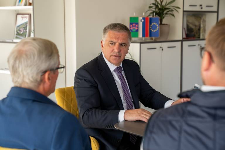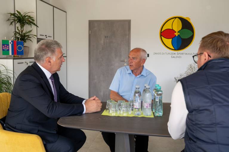 Predsednik Državnega sveta Republike Slovenije Marko Lotrič se je danes v Centru Volčin v Šalovcih srečal z župani občin Šalovci, Gornji Petrovci in Hodoš, Iztokom Fartekom, Francem Šlihthuberjem in Denisom Tamaškom.