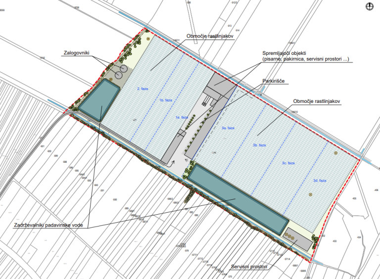 Gradnja stavb za rastlinsko pridelavo bo razdeljena na več faz. Fazno se bo gradilo tudi elektroenergetsko omrežje in po potrebi ostala gospodarska javna infrastruktura.