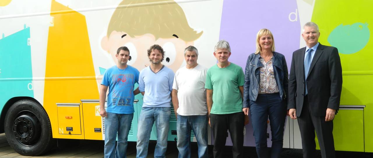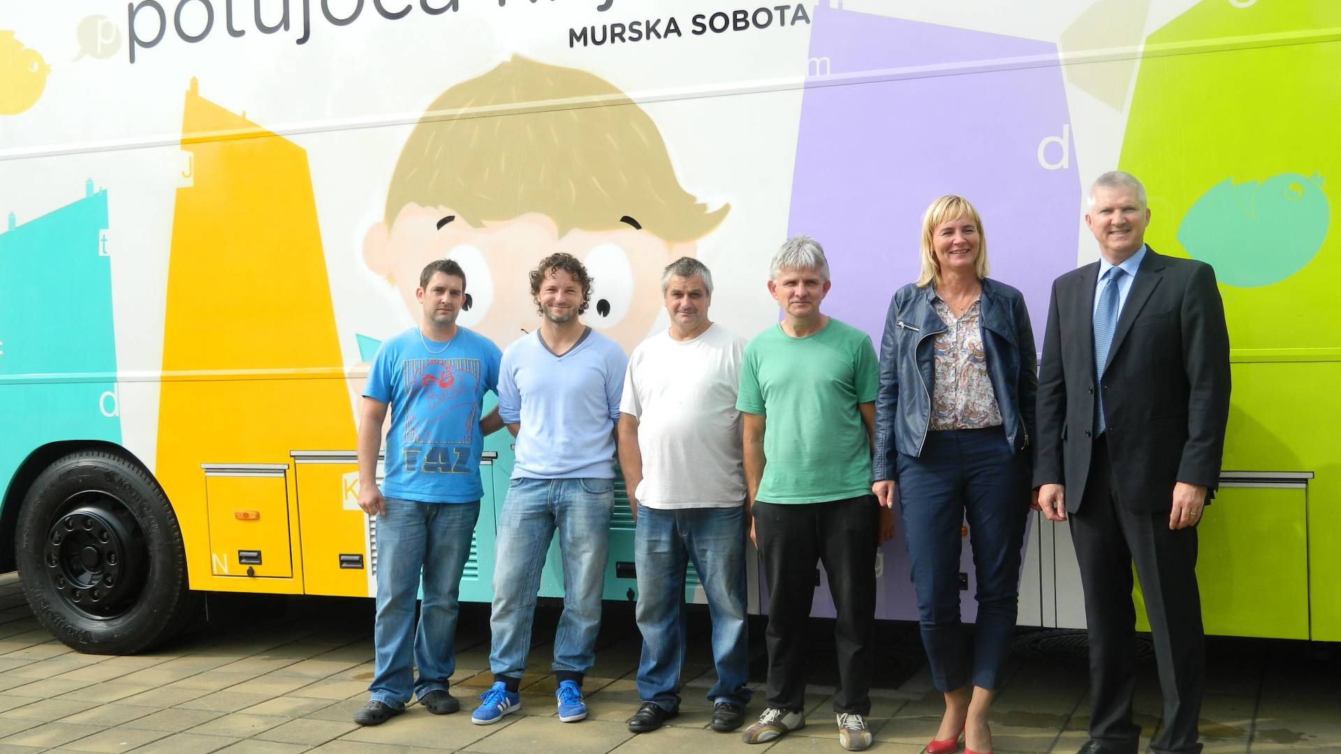 Sodelavci Pokrajinske in študijske knjižnice Murska Sobota so včeraj z velikim veseljem polnili knjige v prenovljen "bibliobus" - potujočo knjižnico na avtobusu. Živo poslikan avtobus - poslikal ga je street art umetnik Gregor Purgaj, ki je poslikal tudi tranformator pred knjižnico in galerijo - si je skupaj z direktorico Pokrajinske in študijske knjižnice Jasno Horvat ogledal tudi župan Anton Štihec.