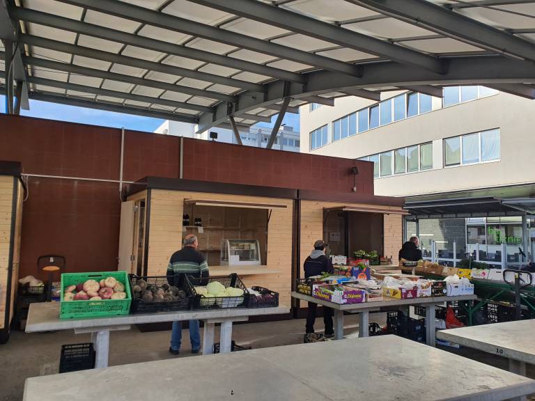 V dveh od štirih hišk, ki so bile postavljene v namen olajšanja dela stalnih ponudnikov tržnice, so danes ponudniki že začeli s prodajo.