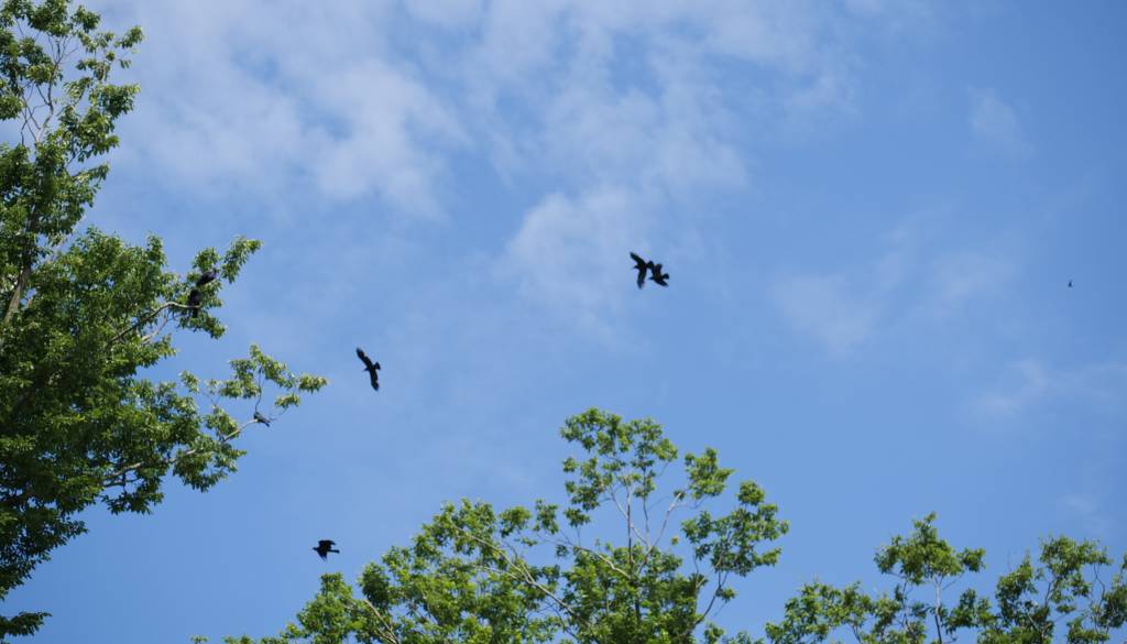 Posledično pride do tega, da če se človek preveč približa mladiču, začnejo vrane preletavati okoli, saj želijo odgnati plenilce.