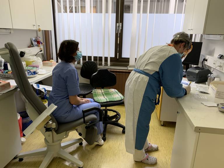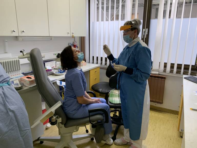 »To je to, lahko daš masko nazaj,« sta običajno dejali zdravstveni delavki po tem, ko sta svojim sodelavcem odvzeli brise.