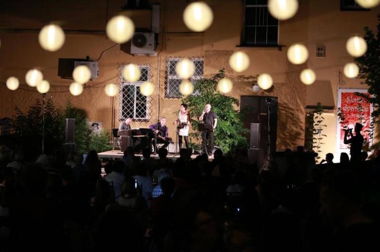 Za Hranilnico prekmurskih dobrot se nahaja manjše dvorišče, ki ga mimoidoči stežka opazijo. A v poletnih večerih, ko na tem majhnem dvorišču odzvanja glasba, navdihnjena z jazz, blues, funk in ostalimi ritmi, marsikomu zastane korak.
