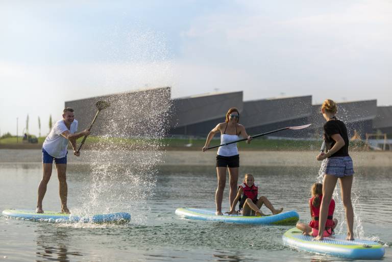 Ustavimo se na obrežju jezera, ki je polno priložnosti za aktivno preživljanje prostega časa v družbi družine in prijateljev. Jezero se ponaša z vadbenim parkom za odrasle, ki ga sestavlja 34 zunanjih fitnes naprav, otroci pa uživajo na igrišču. Tik ob vadbenem parku so štiri hiške z žarom, kjer lahko pripravimo piknik na prostem. Jezero ponuja še plavanje, vodene vadbene rutine v vadbenem parku, supanje, jadranje, zorbing na vodni gladini, vožnjo s kajakom in kanujem, ter najrazličnejše dejavnosti za otroke.