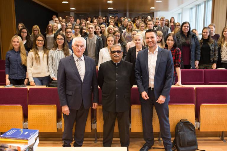 Almo Mater je obiskal veleposlanik Indije njegova ekscelenca gospod Sarvajiti Chakravartij. Študentom je ob dnevu indijske ustave predaval o nastanku in implementaciji indijske ustave. Alma Mater Europaea – ECM se namreč akademsko povezuje z Indijo in njenimi univerzami ter visokošolskimi institucijami.
