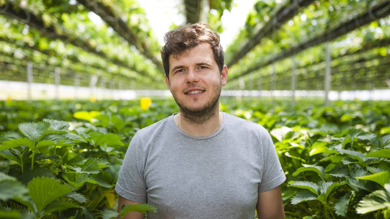Mlada kmeta jagode pridelujeta v hidroponskem rastlinjaku, ki pa spet ni čisto navaden hidroponski rastlinjak. Rastlinjak, ki sta ga Kristjan Lovrec in Aleš Kovačec vzpostavila pred enim letom, jagodam omogoča zaščito pred boleznimi in tudi večji donos.