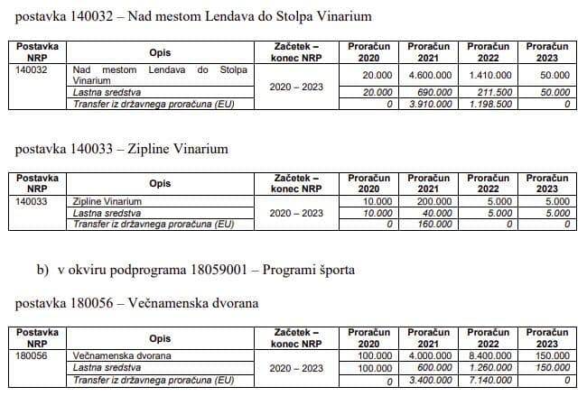Gre za projekte "Nad mestom Lendava do Stolpa Vinarium", "Zipline Vinarium" in "Večnamenska dvorana".