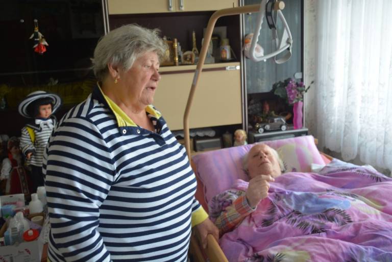 Namesto, da bi hudo obolelega moža namestila v dom starejših, ga je Irena vzela domov in ga ves čas s pomočjo ustreznih služb oskrbuje doma, kjer ves čas negibno leži.