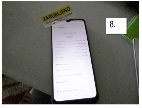 Okrajno sodišče v Mariboru na dražbi prodaja mobilni telefon Samsung Galaxy A22 5G.