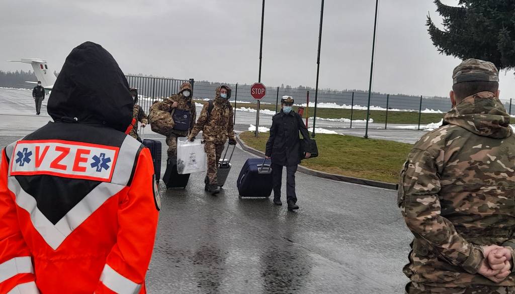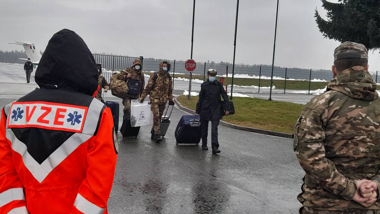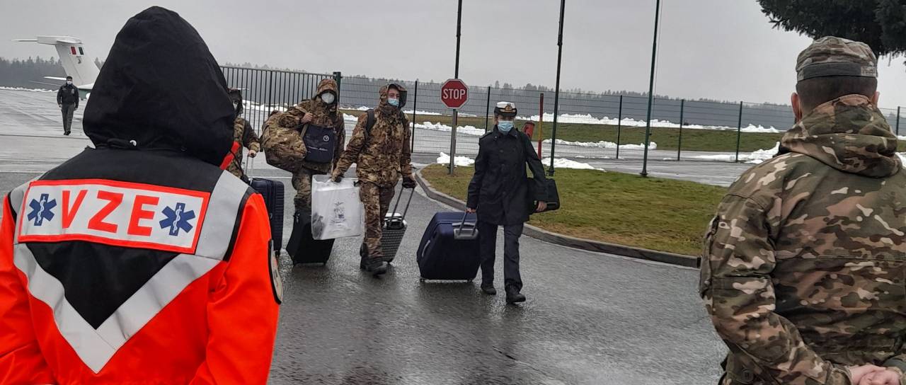 V Slovenijo je danes prišlo na pomoč šest italijanskih vojaških zdravstvenih delavcev, ki se bodo pridružili skupinam vojaške zdravstvene enote Slovenske vojske pri pomoči v covidnih bolnišnicah. Še devet se jim jih bo zaradi današnjega slabega vremena pridružilo v ponedeljek.