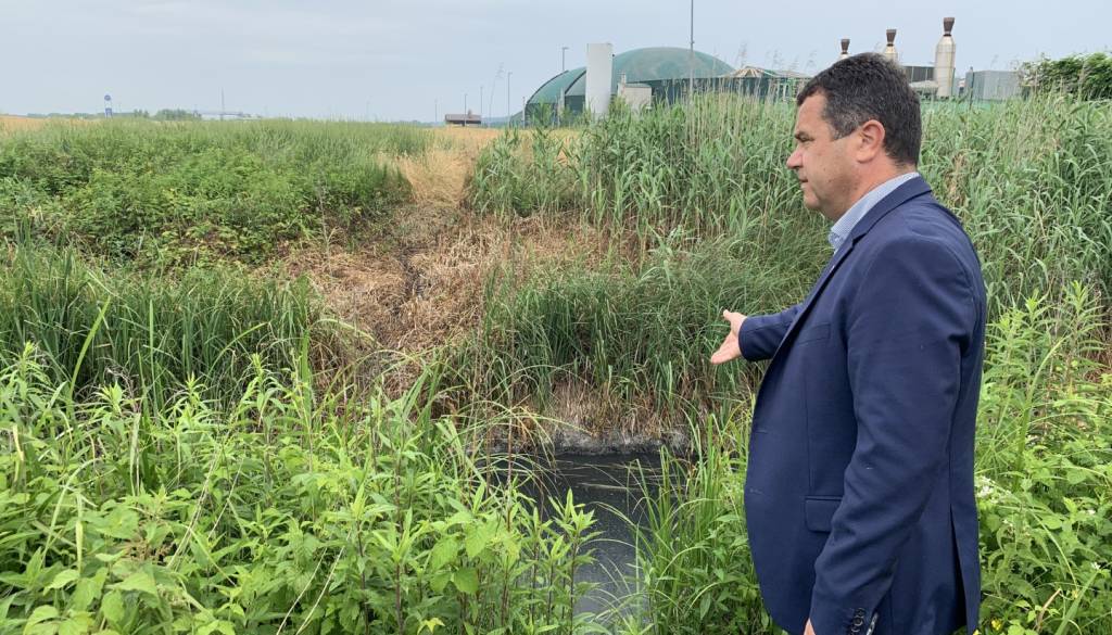 Spomnimo, včeraj popoldne je potekala prava akcija lendavskega župana Janeza Magyara in medobčinskega inšpektorja Mirana Doma, ki sta na terenu preverjala izvor smradu. Smrdečo snov sta opazila v potoku Kopica za bioplinarno, sledi izlitja pa še na drugi strani ob bioplinarni na njivi pšenice, ki je bila posušena oziroma ožgana. Župan je po naključju pod posušeno travo našel skrite gasilske cevi, ki so bile na polje speljane od fermentorjev bioplinarne.