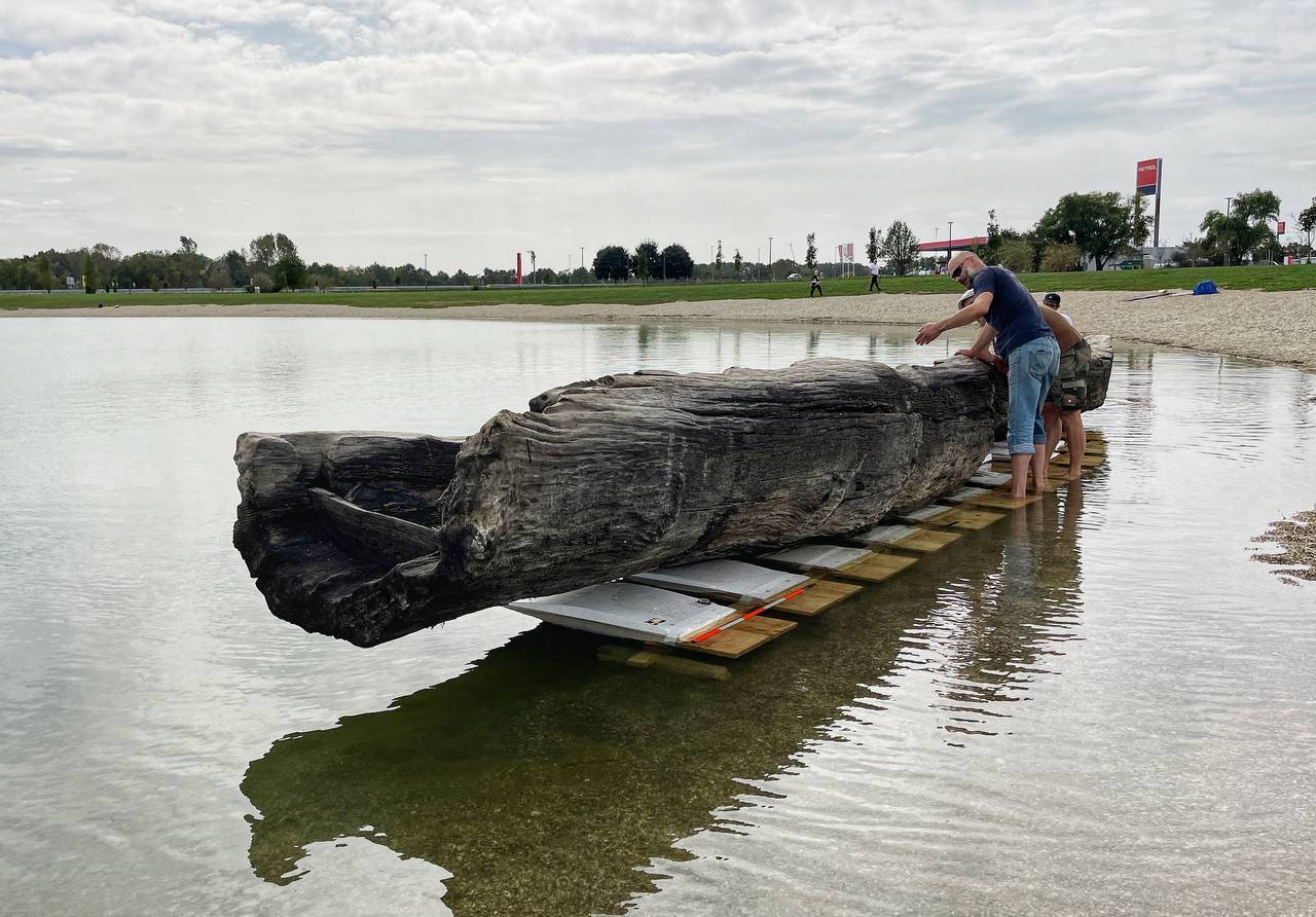 Deblak so v soboto ponoči po nekaj zapletih pri transportu prepeljali na Soboško jezero, včeraj pa so ga tudi zavarovali na mestu, kjer se trenutno nahaja.