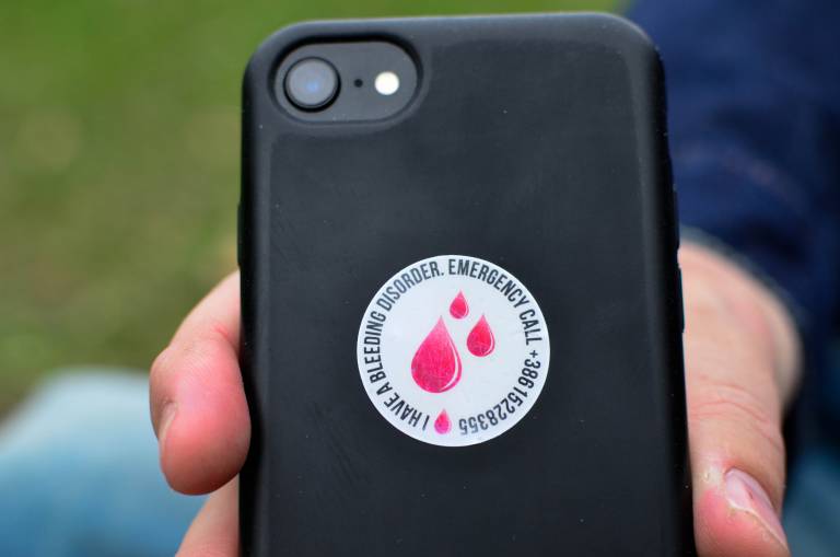 V Društvu krvni bratje so letos, ob svetovnem dnevu hemofilije pripravili nalepke, ki v primeru morebitne nesreče opozarjajo na to, da je oseba hemofilik in da lahko v hujši nesreči oziroma poškodbi tudi izkrvavi. Na njej je telefonska številka, na kateri so 24 ur na dan in vse dni v tednu dosegljivi dežurni hematologi. Takšen klic lahko hemofiliku reši življenje.
