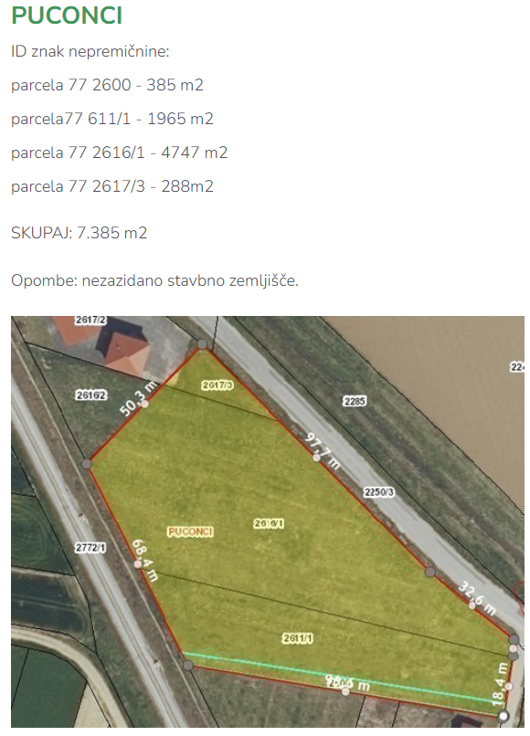 Na spletni strani trgovine Jager je moč opaziti, da se prodaja več parcel v Puconcih. Skupna površina vseh nepremičnin znaša 7385 kvadratnih metrov in gre za nezazidano stavbno zemljišče.