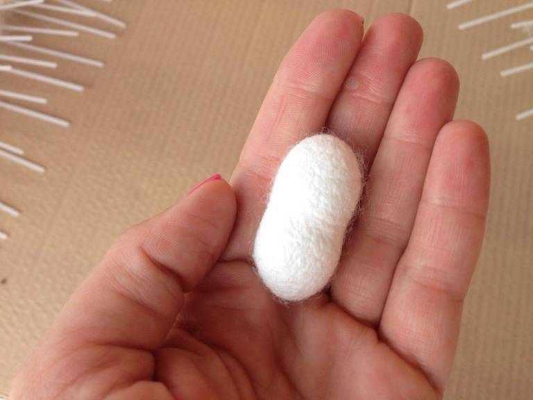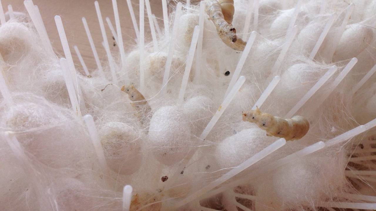 »Gosenice začnejo delati vato in potem znotraj začnejo delati kokon. Vsaka gosenica sviloprejka naredi svoj kokon, ki je ključen, da dobimo svilo. Iz kokona lahko dobimo največ 900 metrov svilene niti, da bi dobili svileno ruto potrebujemo več kilometrov niti, seveda pa tudi ogromno časa in potrpežljivosti,« vneto pojasnjuje Škalič.