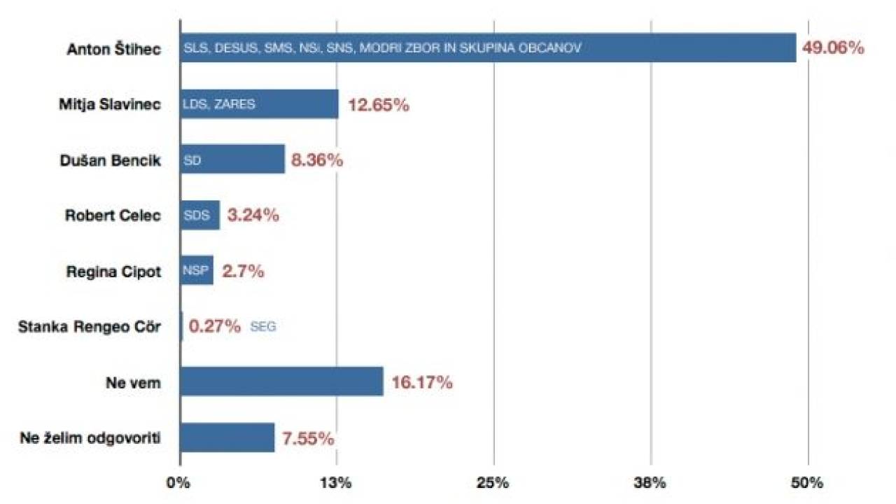 Štihec s 36 % prednosti pred drugouvrščenim Slavincem