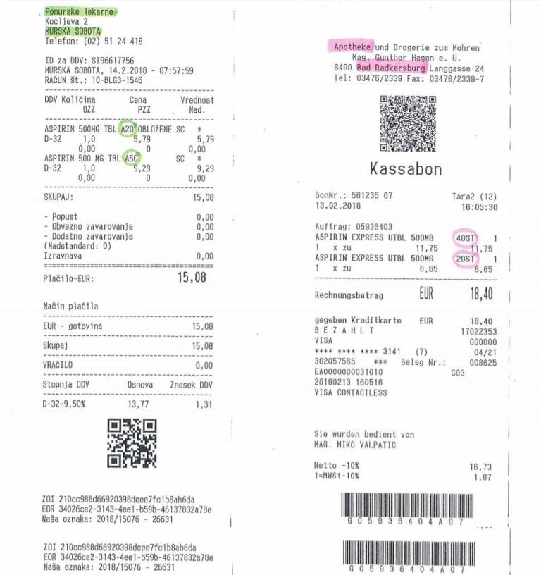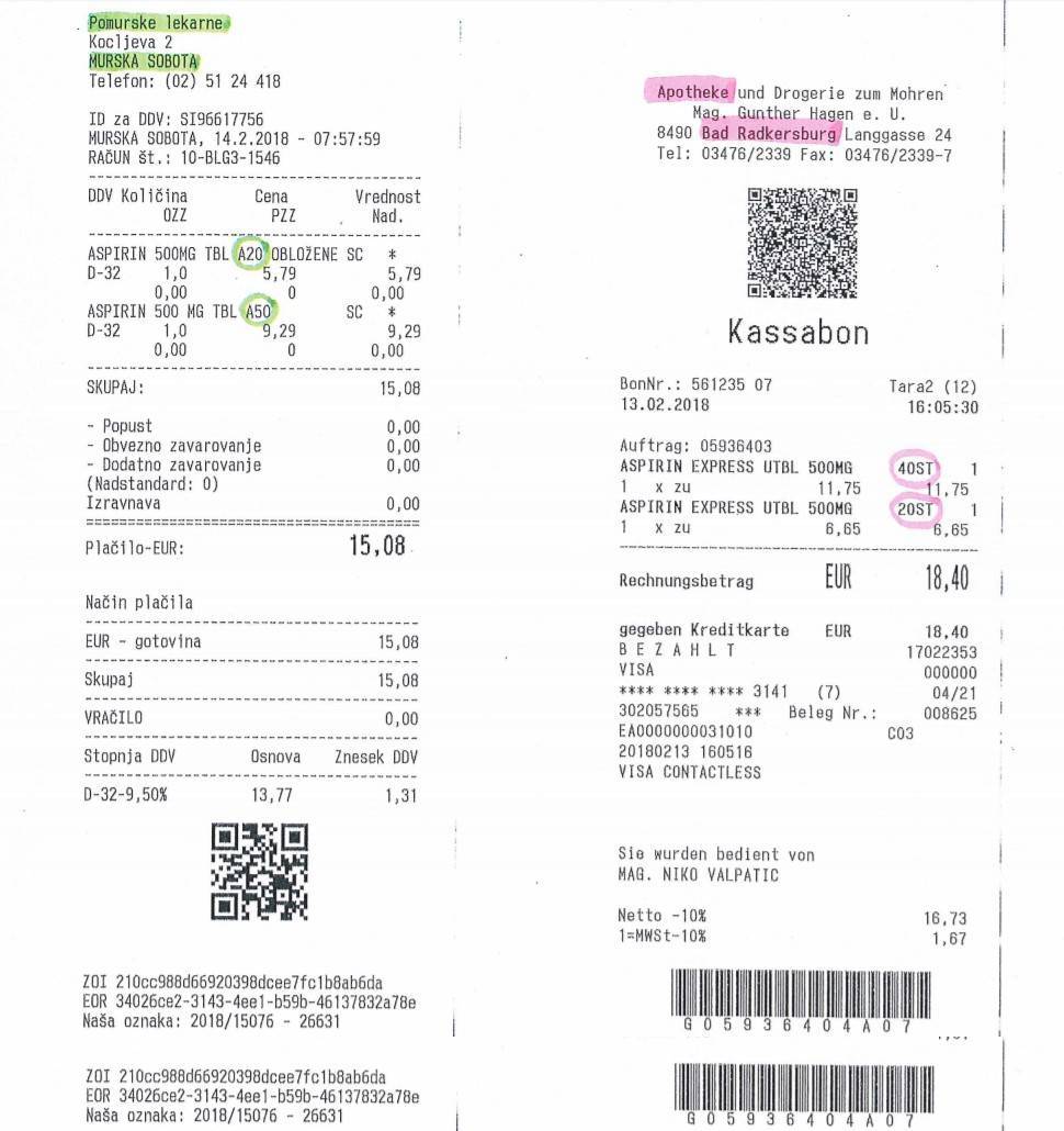 Toda te očitke v Pomurskih lekarnah zavračajo, kar so podkrepili tudi z računi, te si lahko ogledate spodaj, na katerih je jasno razvidno, da je aspirin v Pomurskih lekarnah cenejši, kot v Avstriji.