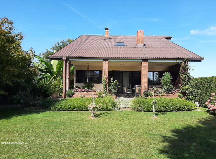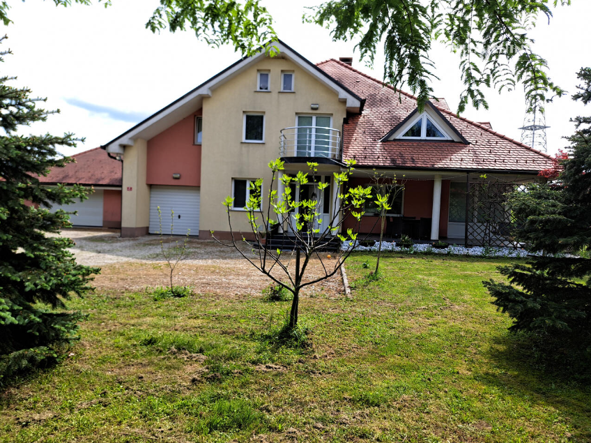 Hiša se nahaja na obrobju mesta, nudi pa dve ločeni, samostojno funkcionalni stanovanji, dve garaži za avtomobil in večjo zunanjo teraso ter fitnes.