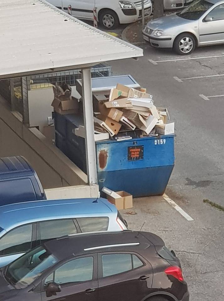 Ampak brez šale, kontejner za smeti je tam nedavno zabasal velik televizor. Zdi se, da nad 'pomoto' tudi Komunala ni bila pretirano navdušena, saj tamkajšnji stanovalci predpostavljajo, da je omenjeni kontejner ostal neizpraznjen prav zaradi nepravilno odvrženega sprejemnika.