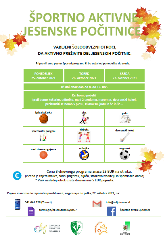 Zavod za kulturo, turizem in šport Murska Sobota v času jesenskih počitnic organizira pester športni program. Ta je primeren za starostne skupine od sedem do deset let.