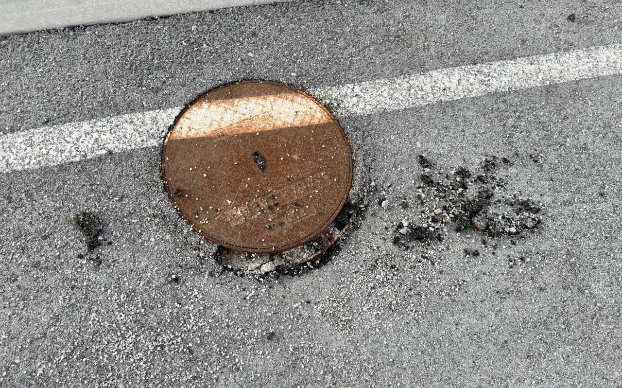 Kot je izpostavil, se kovinski pokrovi jaškov obračajo okoli, celotni kosi asfalta odstopajo, voda pa na cesti stoji že ob manjši plohi.