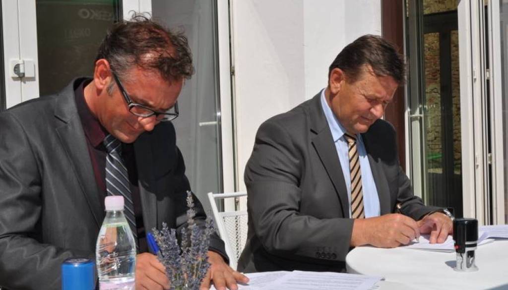 Pogodbo sta pred jutrišnjo otvoritvijo novih pridobitev RIS Dvorca Rakičan podpisala župan Mestne občine Murska Sobota Aleksander Jevšek in direktor RIS Dvorec Rakičan Robert Celec.