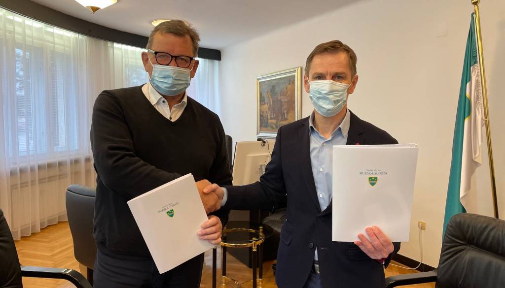 Župan Mestne občine Murska Sobota Aleksander Jevšek in član uprave podjetja Pomgrad Boris Sapač sta danes podpisala pogodbo o izvajanju gradbenih del za izgradnjo kanalizacijskega kolektorja na Gregorčičevi in Slomškovi ulici.