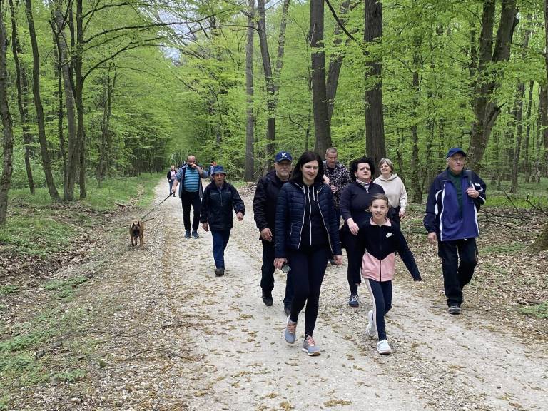 Včeraj so se pohodniki zbrali pred etnografsko hišo Györgya Dobronokija in se podali na deset kilometrsko pot med pomladno naravo.