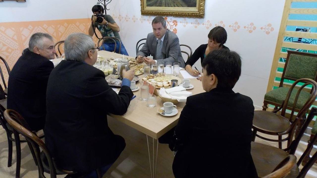 Že tradicionalne jutranje kave z kmetijskim ministrom na Pomurskem sejmu Agra. Jutranja srečanja potekajo delavno, minister se ob kavi pogovarja z novinarji.