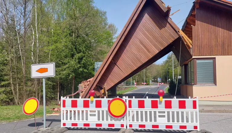 Pojasnili so nam, da se je zaradi nesreče madžarskega traktorista podrl nadstrešek objekta na nekdanjem mejnem prehodu v Čepincih.