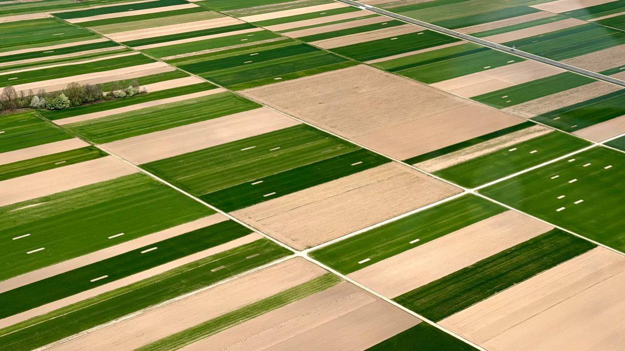 Na nekaterih njivah v Pomurju so med enakomerno posejanimi površinami vidni drobni pravokotniki, kjer rastlin skoraj ni.