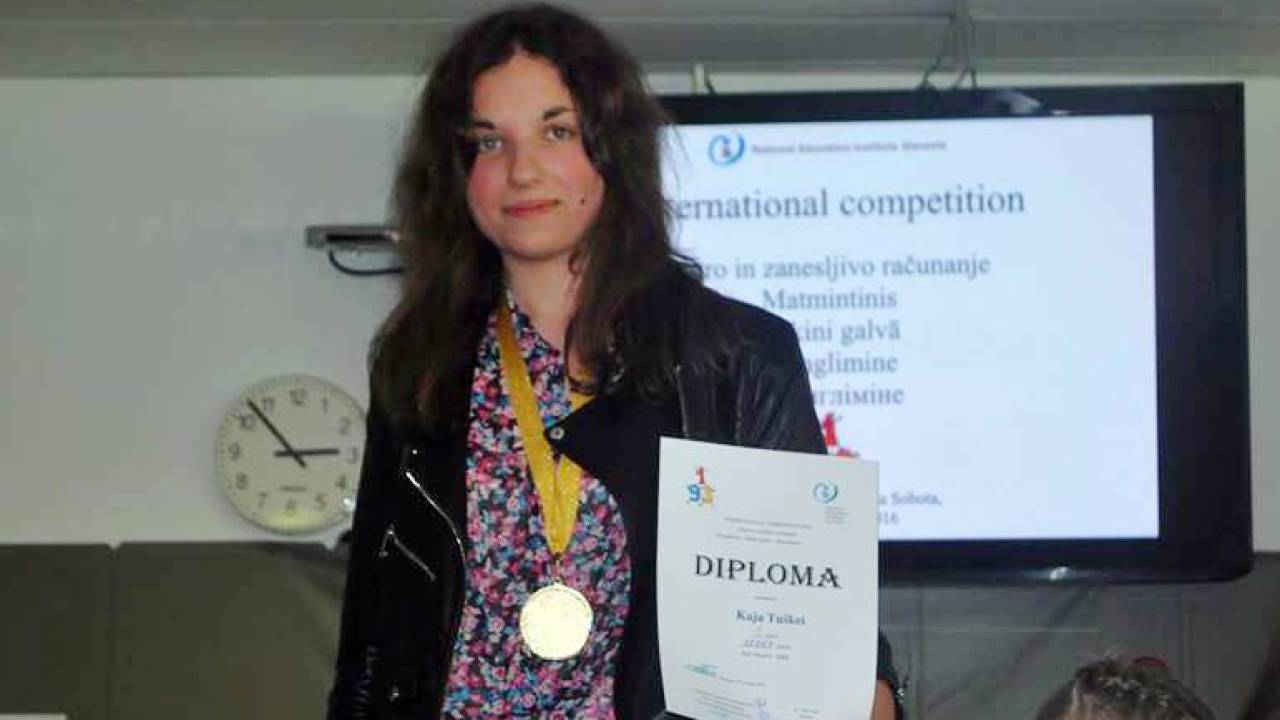 Kaja Tuškei, dijakinja 2.c oddelka Gimnazije Murska Sobota je minulo soboto na meddržavnem tekmovanju Hitro in zanesljivo računanje osvojila 1. mesto in zlato medaljo v svoji kategoriji. Dosegla je drugi najboljši rezultat med 129 tekmovalci in najboljšega med vsemi slovenskimi udeleženci.