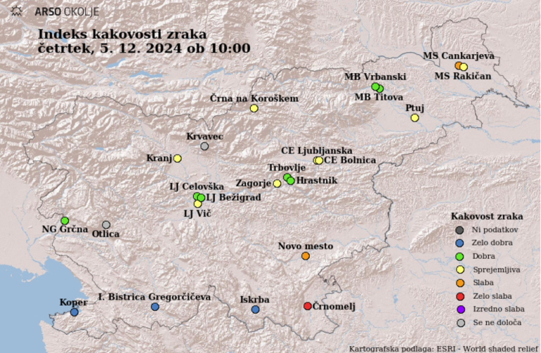 Današnja kakovost zraka se je nekoliko izboljšala, predvsem zaradi vetra, ki je poskrbel za boljše razmere.