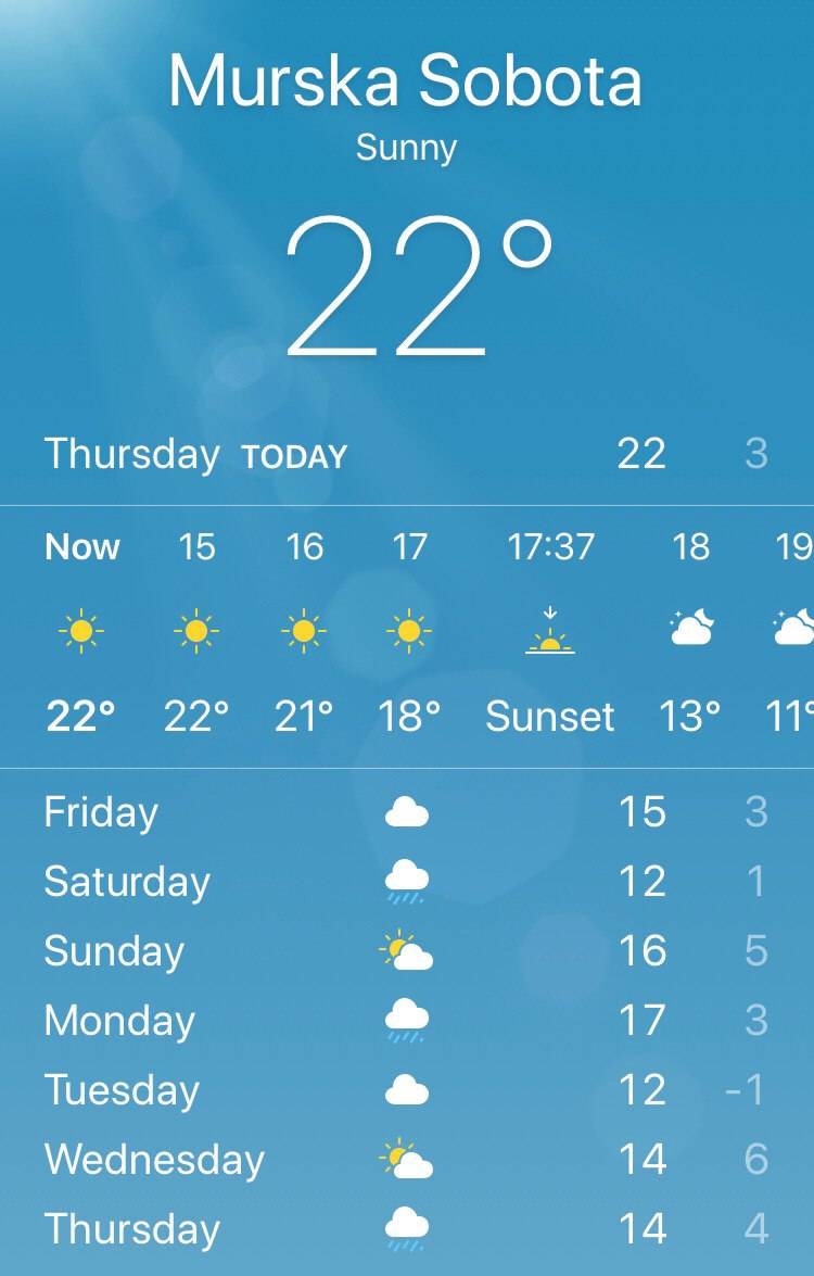 Kratki rokavi že februarja? Ob izjemno toplem ozračju se številni že danes po mestu sprehajajo s kratkimi rokavi. Samodejna vremenska postaja v Murski Soboti je že kmalu po 12. uri kazala kar 22 stopinj Celzija. Ob sončnem vremenu piha zahodni veter, ki dosega hitrost do 18 kilometrov na uro.