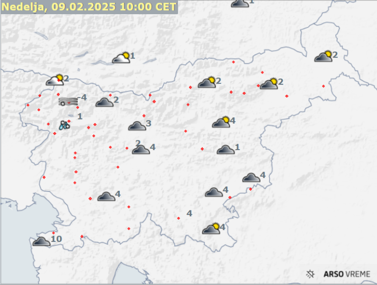Najvišje dnevne temperature bodo od 4 do 7, na Primorskem okoli 12 stopinj Celzija, je zapisano na spletnih straneh Agencije Republike Slovenije za okolje.