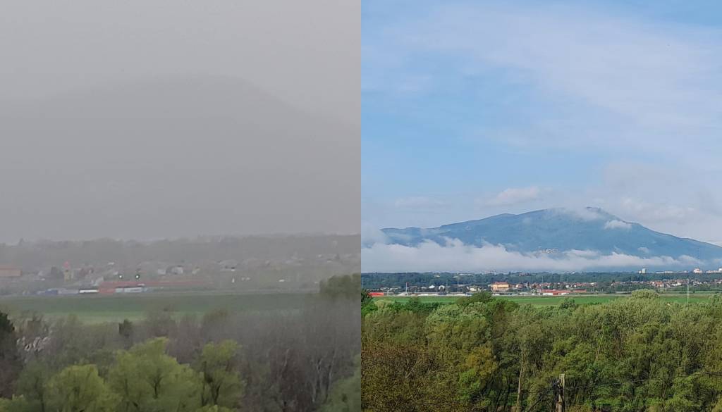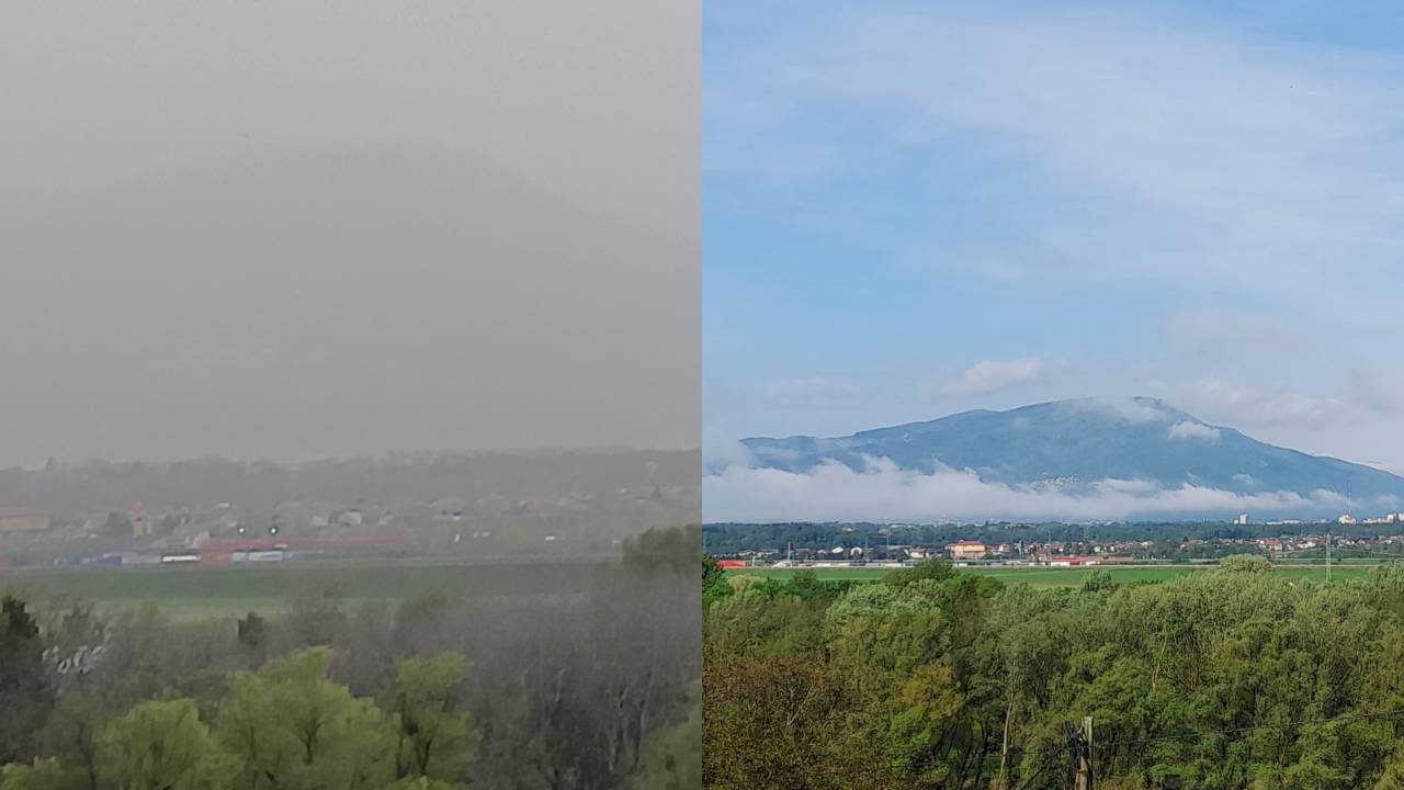 Ena fotografija je bila posneta v ponedeljek, ki je bil v zraku puščavski pesek, druga pa ob lepem vremenu. Razlika je neverjetna.