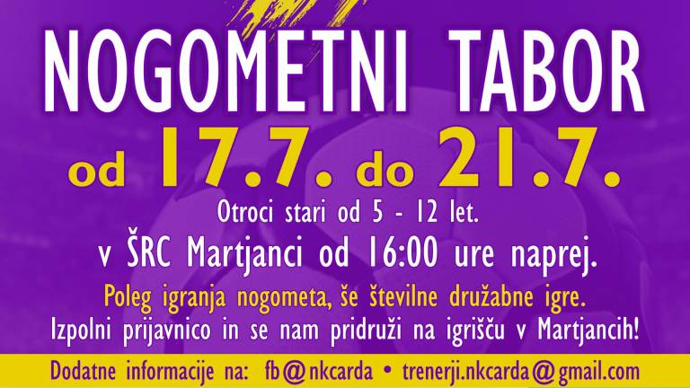 Tabor je brezplačen, odvijal pa se bo od 17. do 21. julija 2023, od 16. ure naprej, v Športno-rekreacijskem centru Martjanci.