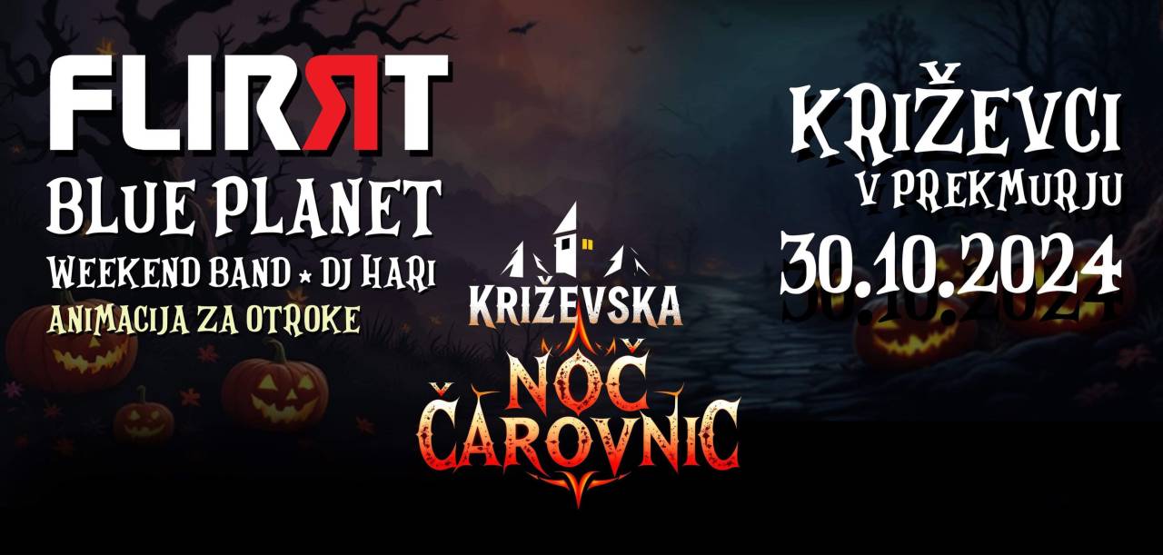 Križevska noč čarovnic - V Križevcih na Goričkem bo zabava, kjer bodo za glasbo poskrbeli Flirt band, Blue Planet, Weekend band in DJ Hari.