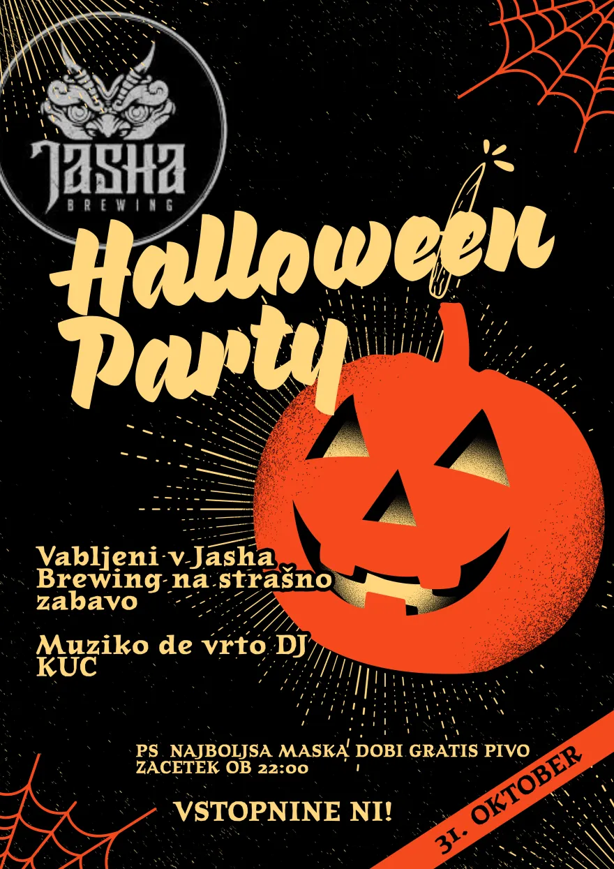 Halloween party v pivnici Jasha Brewing - Ob 22. uri se začne še noč čarovnic v pivnici Jasha Brewing, kjer bo za glasbo in plesne hite različnih obdobij poskrbel DJ Kuc. Dogodek bo prava izbira za ljubitelje disko ritmov in čarobne atmosfere.