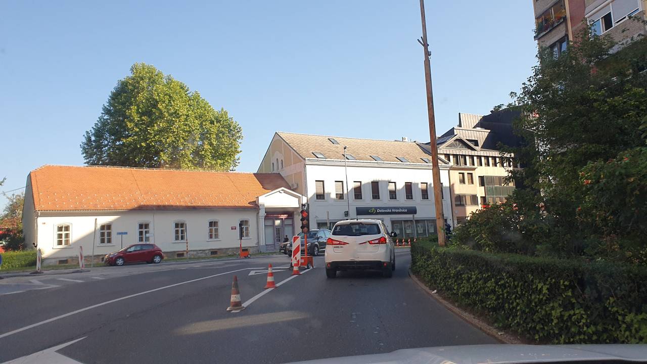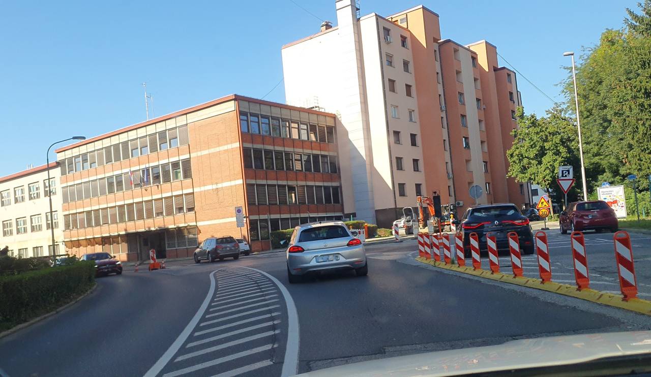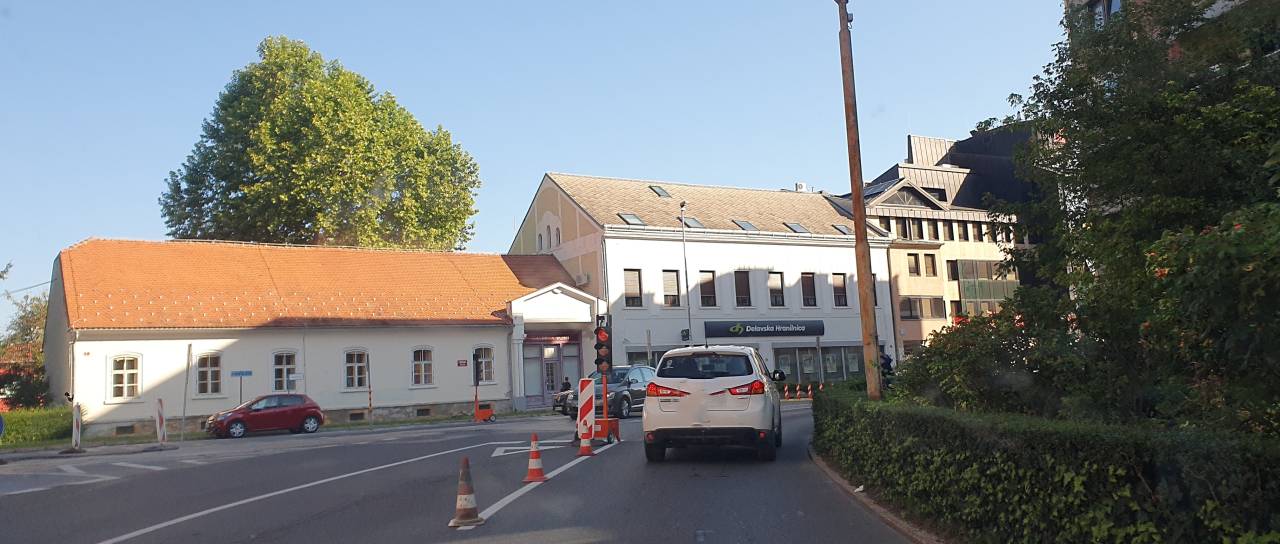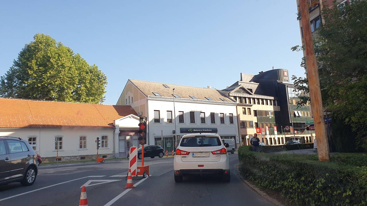 Semafor je zaradi del na cestah postavljen na sredini cestišča, velja pa za zavijanje v levo, torej za zavijanje na Grajsko ulico.