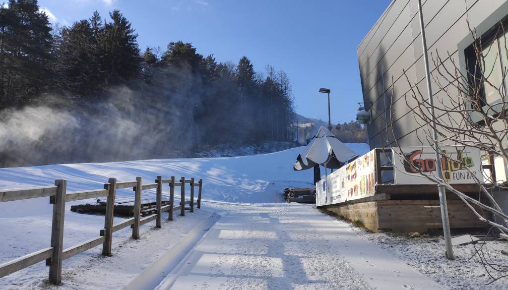 Današnje nizke temperature so omogočile, da so snežni topovi na Čopovi progi opravili svoje delo in jo zasnežili. Smuka do doline v času zimskih šolskih počitnic je zagotovljena.