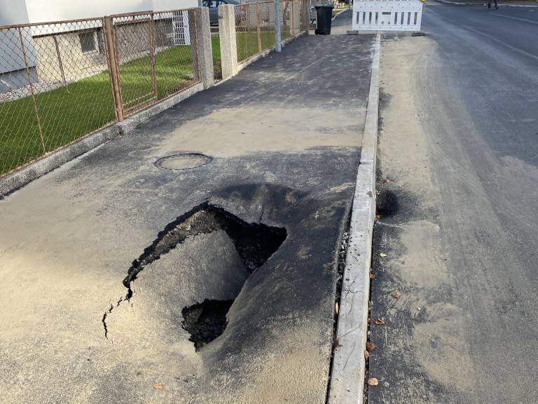Na Severjevi ulici smo opazili dodatno poškodbo, sredi pločnika je med tednom nastala v oči bodeča ogromna luknja ...