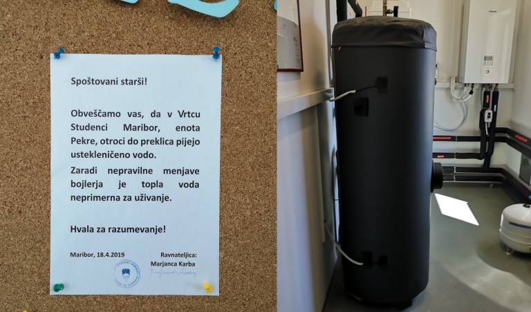»Ko smo izvedeli, da niso namestili ustreznega bojlerja, smo zahtevali, da se ga umakne in zamenja s takšnim, kot je bil prvotno nameščen in do sedaj glede oporečnosti vode ni povzročal težav. Ko smo ugotovili, da ta voda ni uporabna, smo poklicali NIJZ in jih prosili za analizo. Odvzeli so vzorec vode iz bojlerja – za mrzlo so bili mnenja, da ni treba, saj ni kazala znakov vonja ali okusa. A kljub temu smo zaradi varnosti omejili tudi to vodo. Včeraj pa smo dobili ustne rezultate, da so v vodi topila, ki so zdravju škodljiva, in smo takoj ukrepali,« za Mariborinfo pojasnjuje ravnateljica Vrtca Studenci Maribor Marjanca Karba.