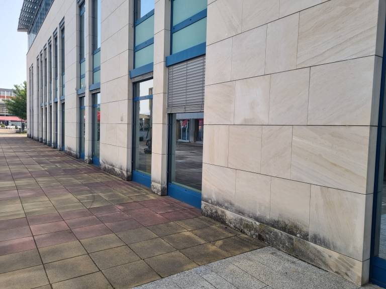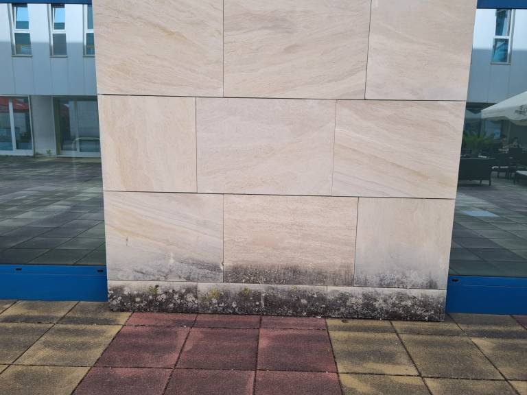 - Odstranitev pasu tlakovcev okrog objekta, kjer so nastale poškodbe zaradi vlage