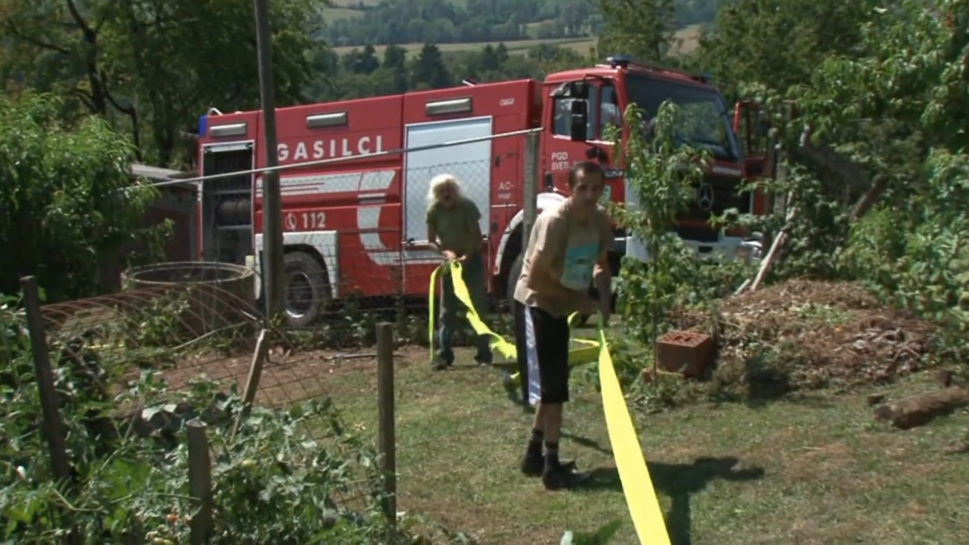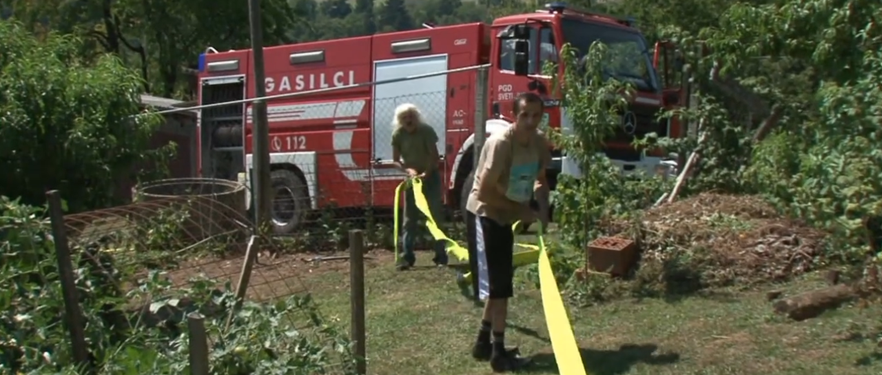 Gasilcem pomagajo tudi domačini, ki takoj poprimejo za delo. Od gasilske cisterne pa do zajetja potegnejo cev in po minuti ali dveh že priteče voda. Domačin Franc Čurman pravi, da je voda življenskega pomena.
