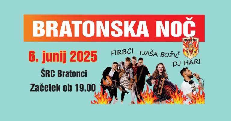 Prostovoljni gasilsko društvo Bratonci pripravlja nepozaben večer. V petek, 6. junija, vabijo na tradicionalno Bratonsko noč, ki bo ob 19. uri zaživela na prizorišču Športno rekreacijskega centra Bratonci.