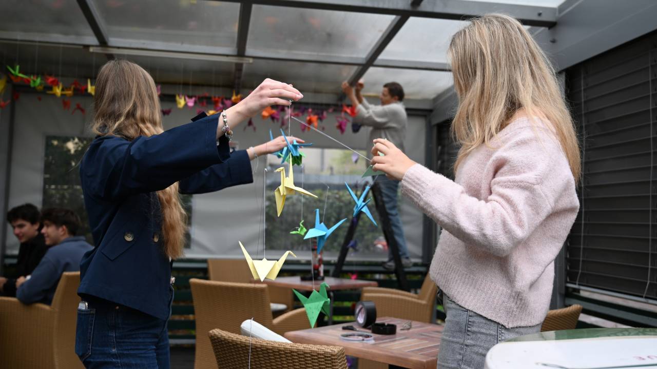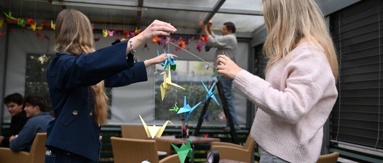 Kaja Viher, dijakinja ljutomerske gimnazije, pa je ob tem zapisala: »Akcija zlaganja origami žerjavov je zajela celo šolo. Dijakinje in dijaki vseh letnikov smo s potrpežljivostjo in ustvarjalnostjo oblikovali, kar 1500 papirnatih žerjavov. Mi pri ITS umetnosti smo nato združili žerjave v celoto in z njimi okrasili strop ŠIC bar terase ter vhod v ŠIC dvorano, kot opomnik, da mir ni samoumeven in da lahko prav vsak izmed nas prispeva k boljšemu svetu.«