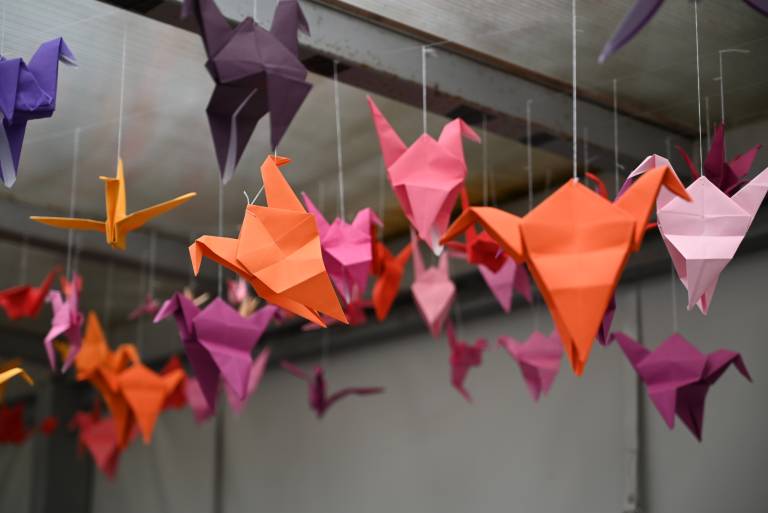 Dijaki so presežek cilja vzeli kot izziv in zgubali več kot 1500 papirnatih žerjavov, ki so zdaj razstavljeni pod nadstreški pred ŠIC Ljutomer.