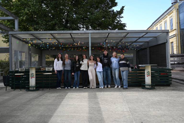 Da bi sporočilo z željo in upanjem za mir v svetu prenesli tudi do drugih, smo se odločili postaviti umetniško inštalacijo z jato žerjavov pod nadstrešek pri ŠIC. Naj poleti v širni svet!«