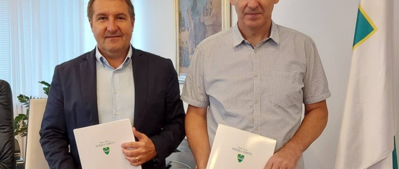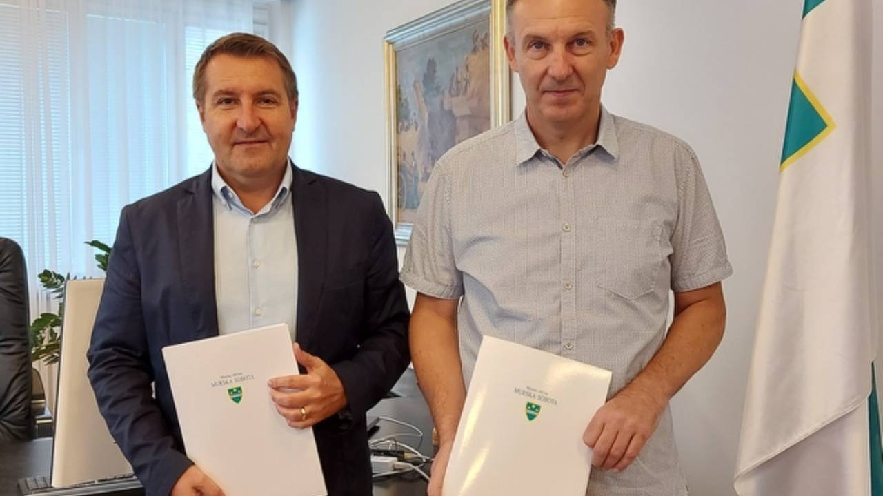 Podžupan v opravljanju funkcije župana Mestne občine Murska Sobota Zoran Hoblaj in direktor Komunale Tomislav Zrinski sta danes podpisala pogodbo za ureditev dostopne ceste do stadiona Fazanerija v Murski Soboti.